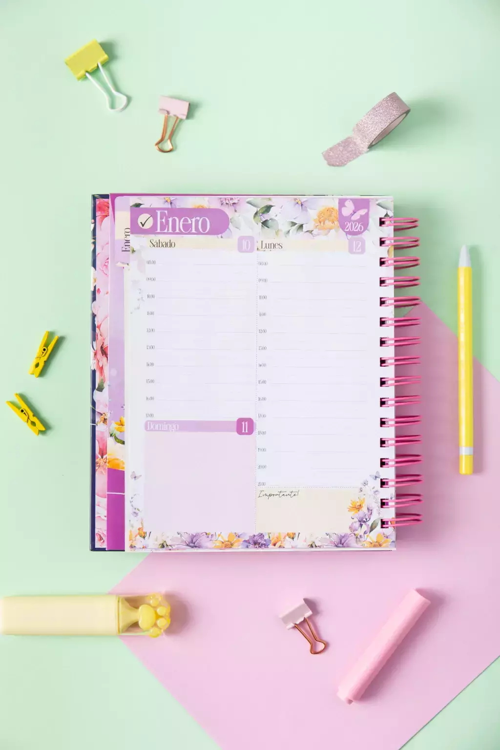 ¡La agenda premium es nuestra agenda más completa! Formato 2 días por hoja con un diseño delicado y romántico 🦋