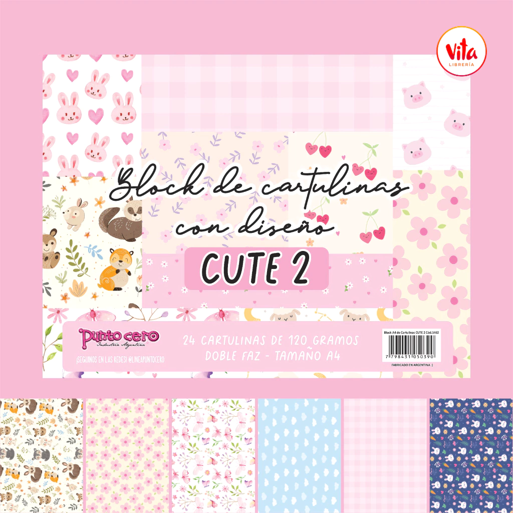 Block 24 cartulinas con diseño Punto Cero "CUTE 2"
