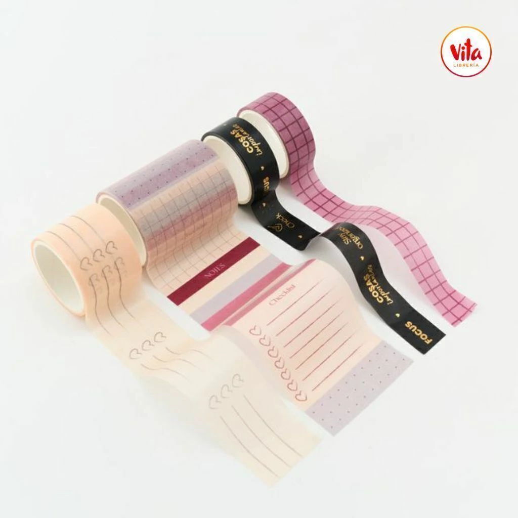 Decorá y organizá tus proyectos con estilo gracias a este set de 4 cintas Washi Tape FW. Con motivos minimalistas y detalles en stamping, son ideales para planners, agendas, scrapbooking o cualquier proyecto creativo. Además, incluyen espacios pensados para checklist, combinando funcionalidad y diseño.